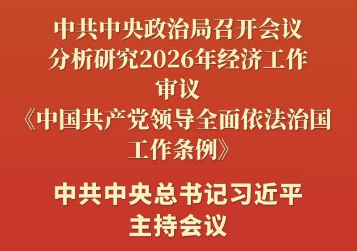 ??新華社北京12月8日電 中共中央政治局12月8日召開(kāi)會(huì)議,分析研究2026年經(jīng)濟(jì)工作,審議《中國(guó)共產(chǎn)黨領(lǐng)導(dǎo)全面依法治國(guó)工作條例》。中共中央總書(shū)記習(xí)近平主持會(huì)議。